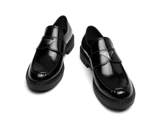 삼각로고 브러쉬드 로퍼 - 블랙
